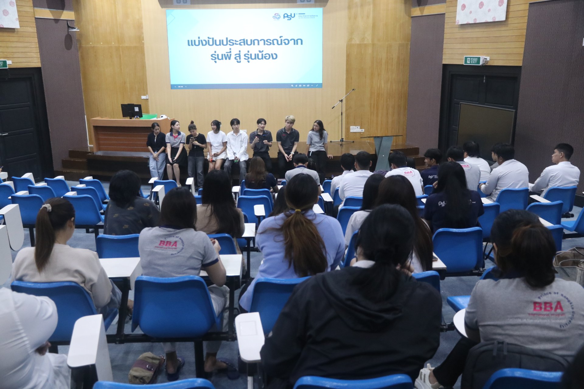 วันศุกร์ ที่ 14 พฤศจิกายน 2568 หลักสูตร BBA จัดโครงการ "BBA Recap and Review 2025" โดยมีพี่ๆปี4ที่ผ่านการฝึกงานแล้ว มาร่วมแชร์ประสบการณ์การฝึกงานในสถานประกอบการต่างๆ เพื่อเป็นประโยชน์ให้กับให้น้องๆ ปี3 เพื่อเตรียมความพร้อมก่อนการฝึกงาน