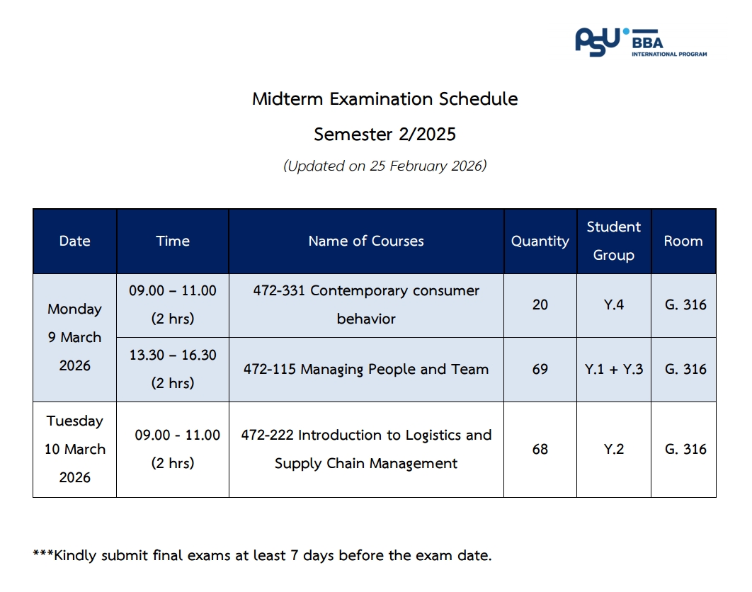 Midterm Examination Schedule 2/2568 (2/2025)